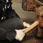 - Cleaning the metal parts of a bogie.